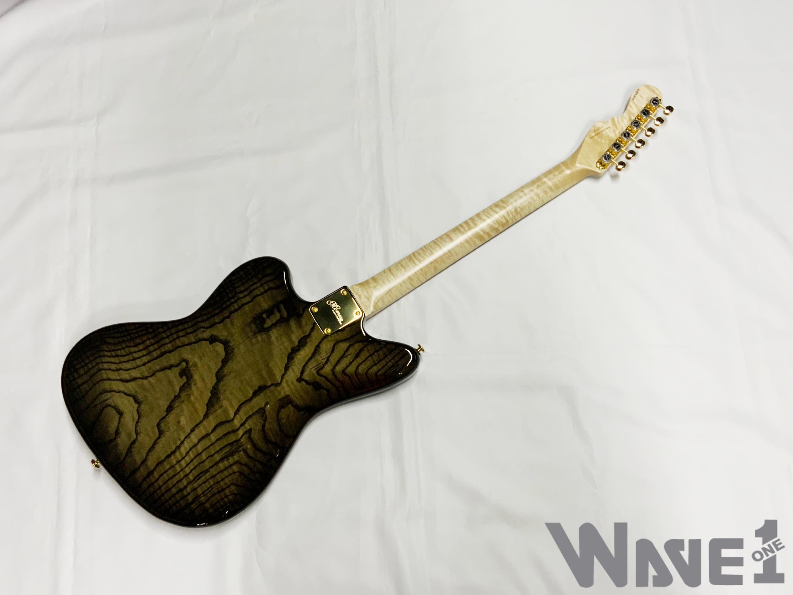 マーブルウッドは「黄金樟」とも呼ばれる東南アジア原産の非常に希少な木材で、特有の美しい瘤杢(バール)が特徴的です。ボディ本体には「神代タモ」を採用。火山の噴火や地殻変動などの理由によりに地中に埋められて数百年~数千年以上の時を経た埋もれ木のことを『神代木』と呼びます。その性質から手に入れようと思っても手に入る木材では無く、土木工事などで地中を掘り返した時に運よく見つかることもあるといった非常に希少で貴重な材料となっております。