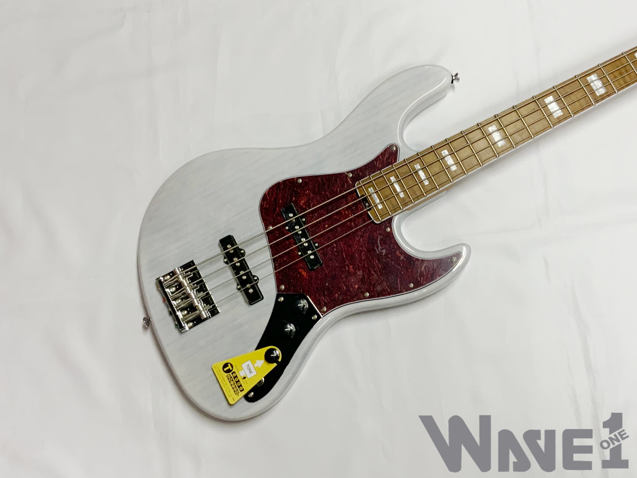 べっ甲柄ピックガードを装備し、指板にはセルバインディングを取り入れることで、よりゴージャスな仕様へとアップグレードされています。ワイドレンジで音抜けが良いアッシュ材をボディに使用し、木目を生かしたシースルーカラーで仕上げた4弦ベースです。
