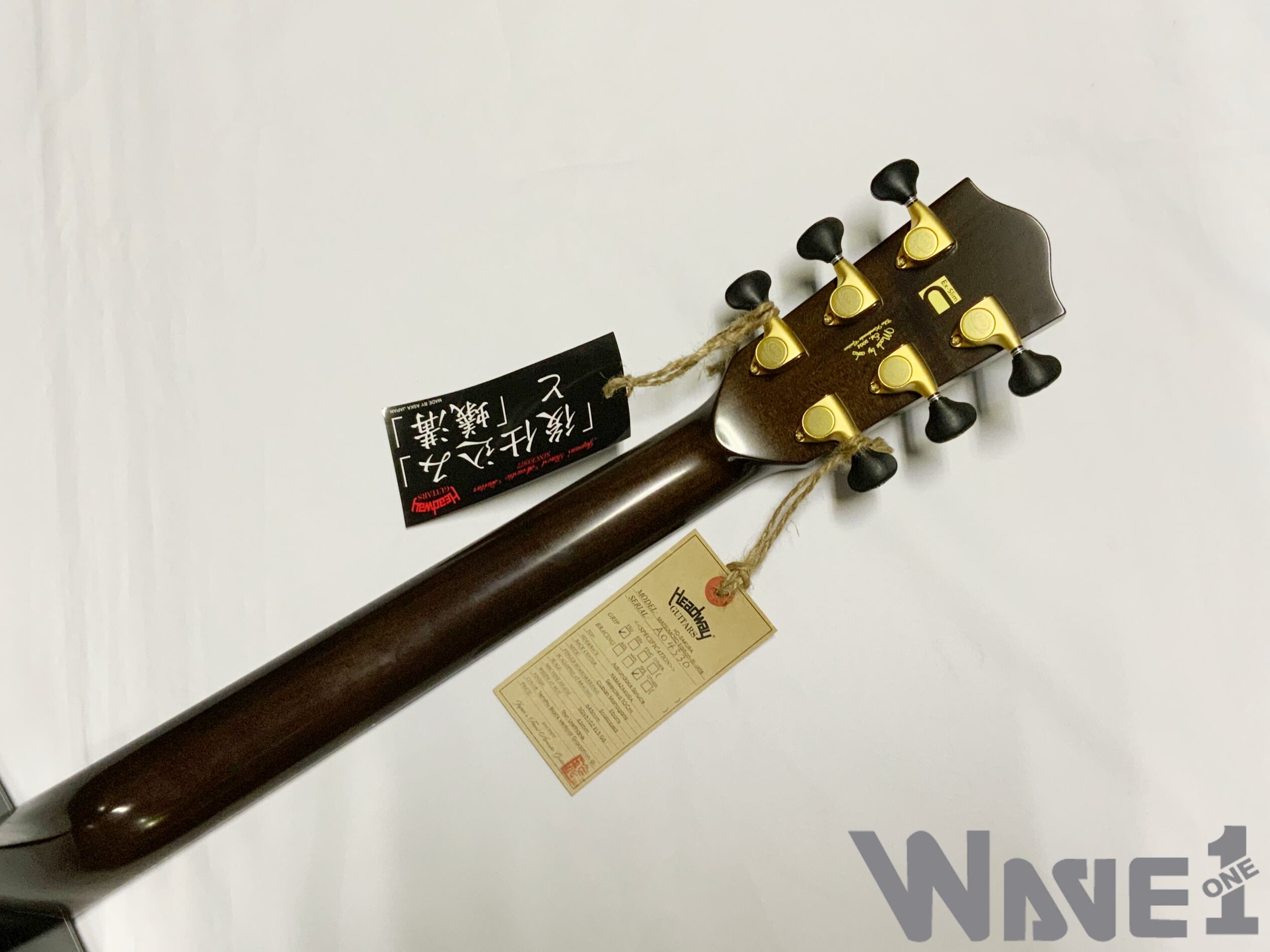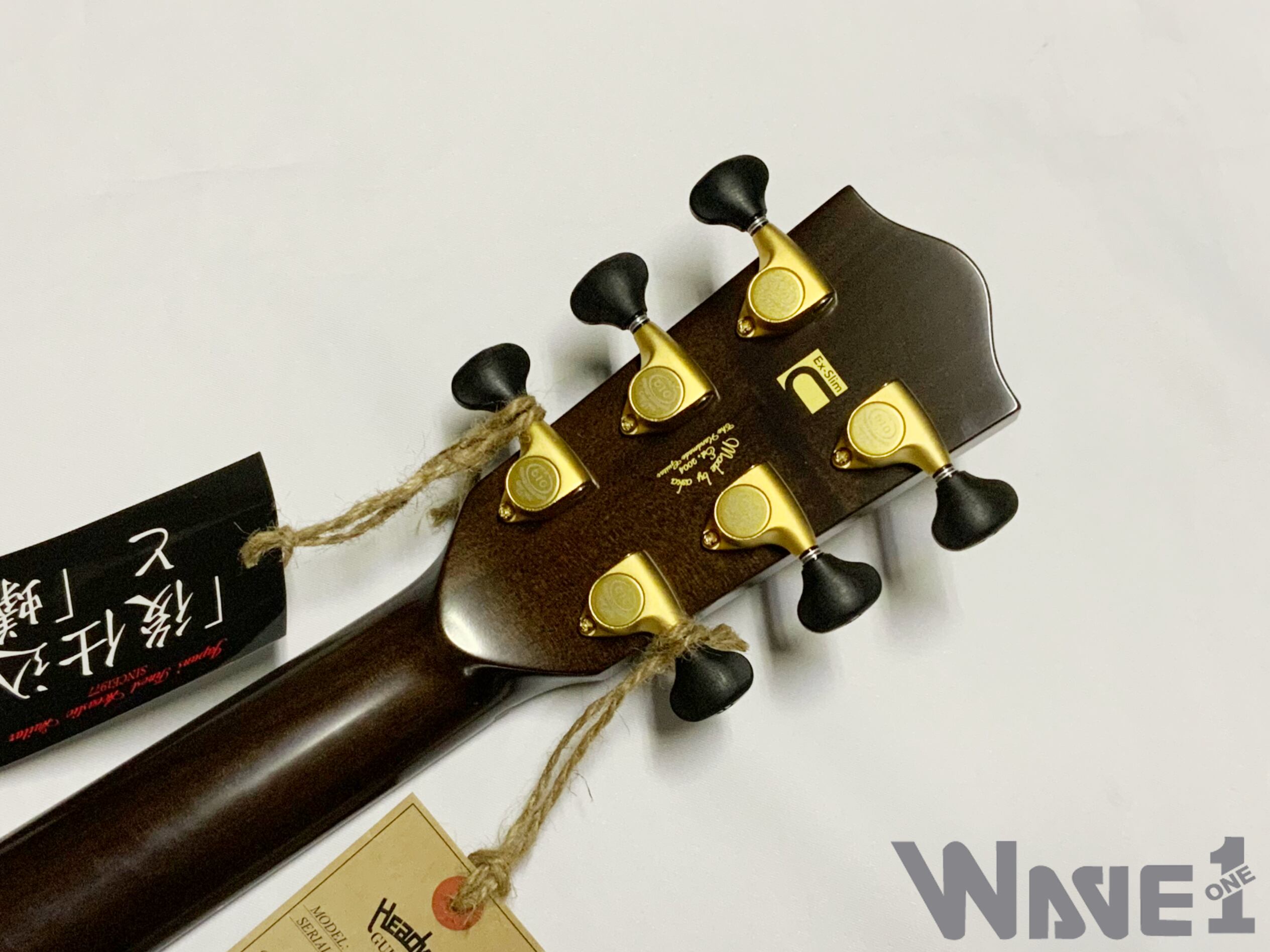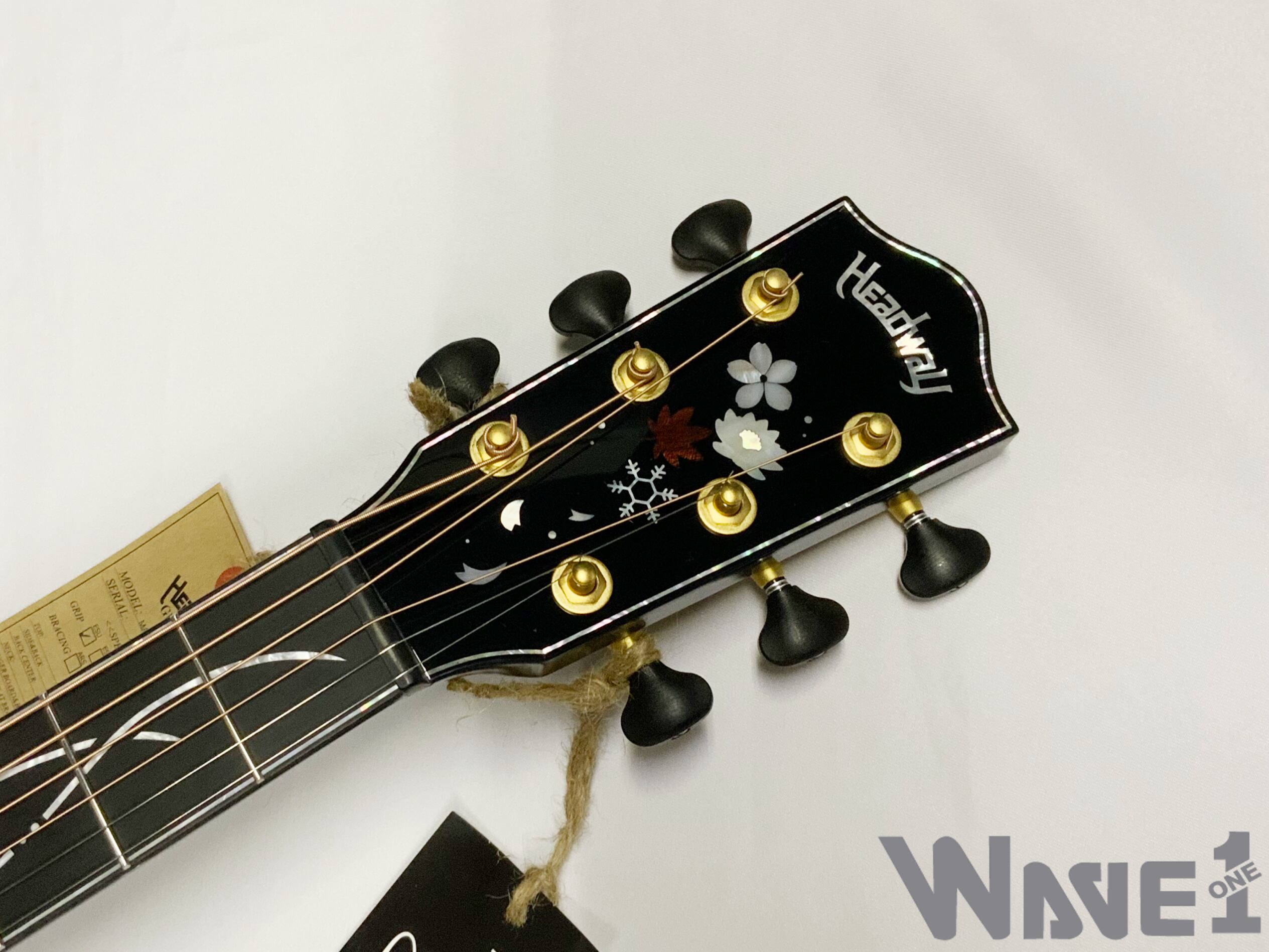 ボディのカラーリングは松本城の天守をイメージした”黒”で仕上げました。桜材の杢目を見せる黒の色合いは表現が難しく、数々のギターを塗り分けてきた職人の技と感覚で調色されています。
