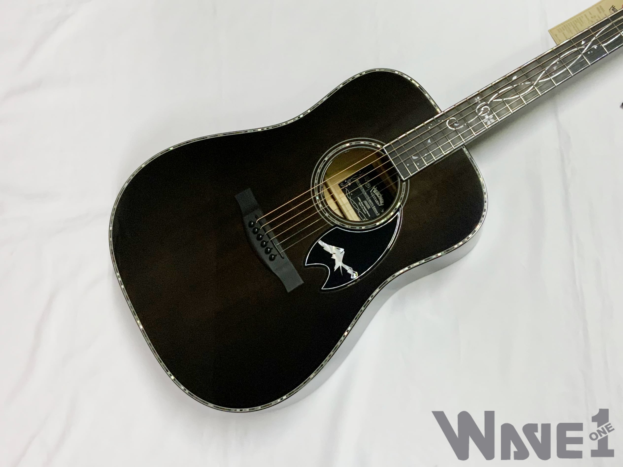 ピックガードは松本平から望む北アルプスの山々の情景をモチーフに、ピックガードへデザインを施しました。